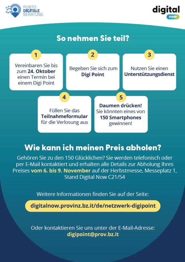 Auch der Südtiroler Gemeindenverband unterstützt die Bürgerinnen und Bürger in digitalen Angelegenheiten und bietet kostenlose digitale Beratungen für interessierte Bürger an. Für die Teilnahme ist es erforderlich, das Online-Anmeldeformular auszufüllen.